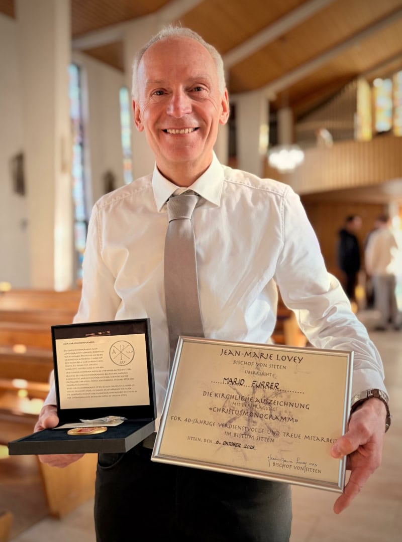 durften wir Mario Furrer mit der kirchlichen Auszeichnung für 40 Jahre Chorgemeinschaft in der Pfarrkirche ehren und danken.
